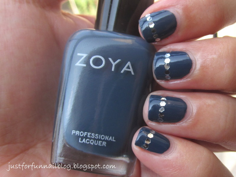For the base I applied two coats of the lovely Zoya - Natty. I admit I have this one for some time now and it's the first time I used it, and that's to bad cos' it really is a stunning shade of navy blue.